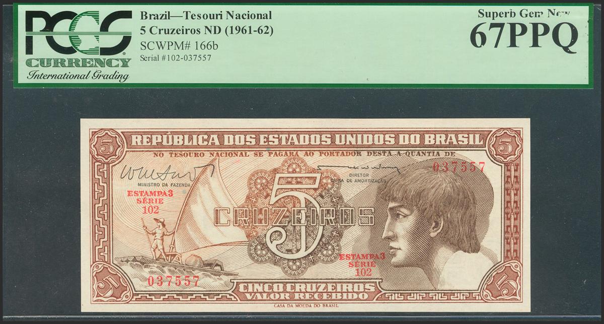 BRAZIL. 5 Cruzeiros. (1962ca). (Pick: 166b). PCGS67PPQ.