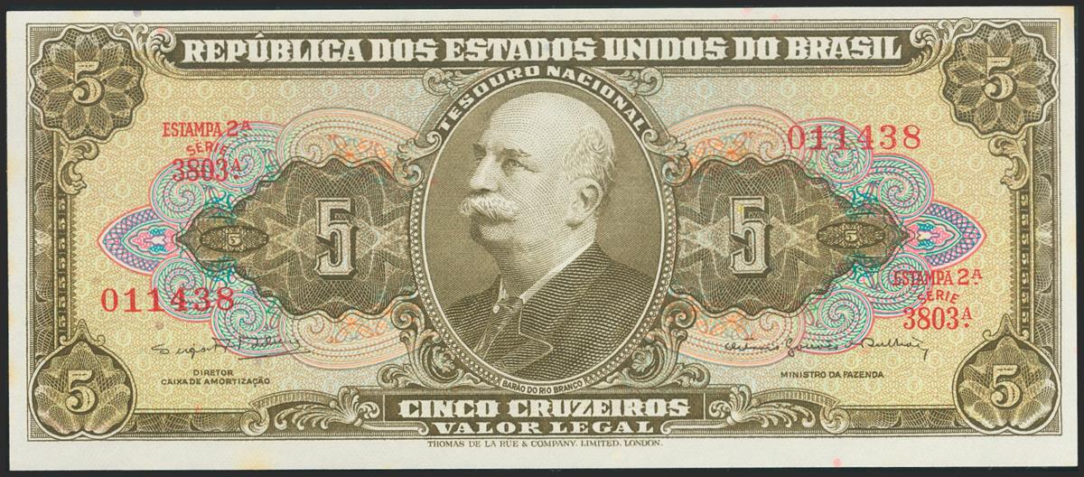 BRAZIL. 5 Cruzeiros. 1964. Estampa 2A. (Pick: 176c). Uncirculated.