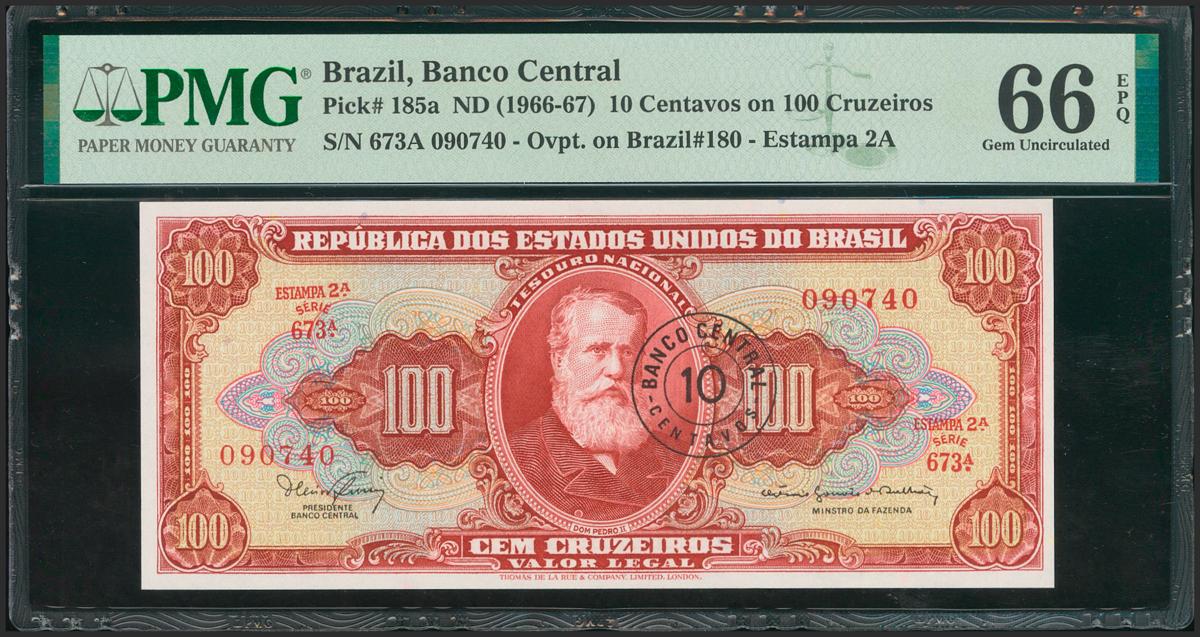 BRAZIL. 10 Centavos. 1966. (Pick: 185a). PMG66EPQ.