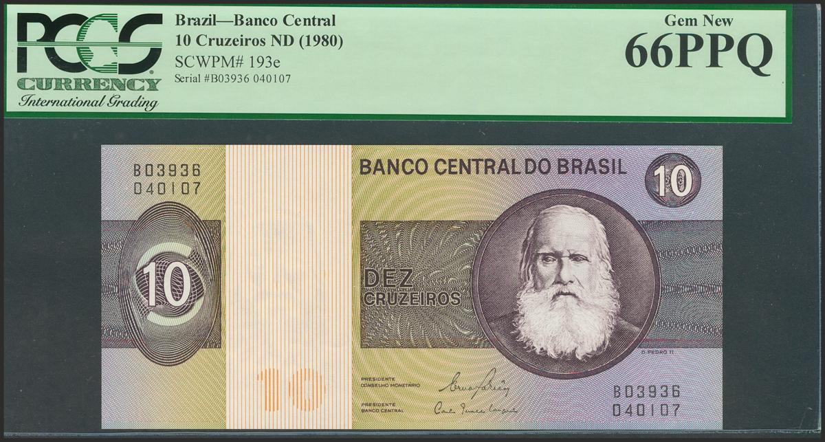 BRAZIL. 10 Cruzeiros. 1980. (Pick: 193e). PCGS66PPQ.