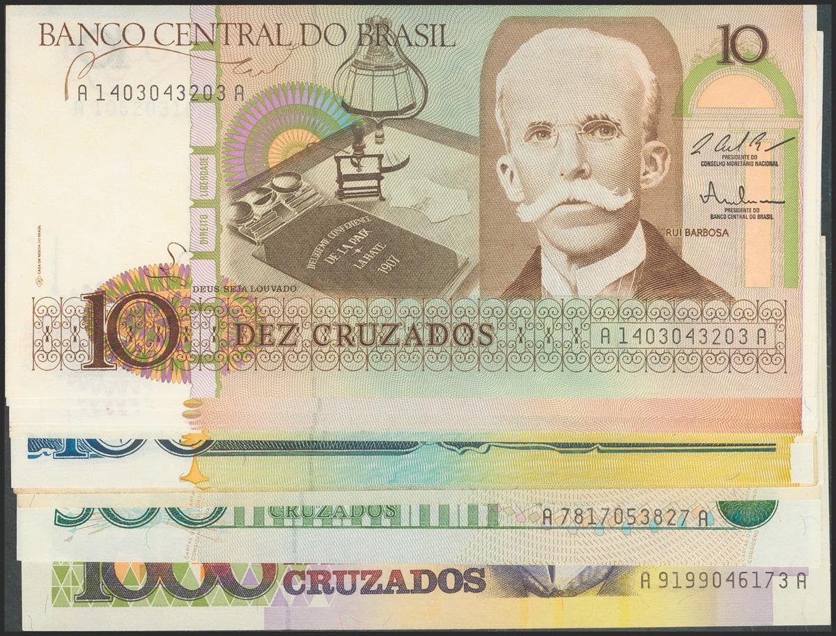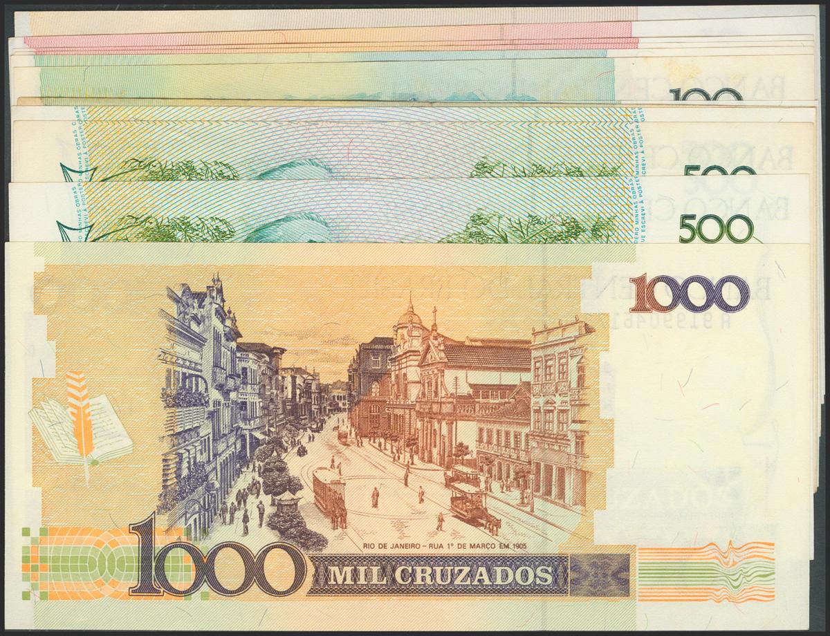 BRAZIL. Set of 12 banknotes: 10 Cruzados, 50 Cruzados (3), 100 Cruzados (4), 500 Cruzados (3) and 1000 Cruzados. 1986-1988. (Pick: 209b, 210a, 211c, 212b, 212d, 213b). About Uncirculated to Uncirculated, except one Very Fine.