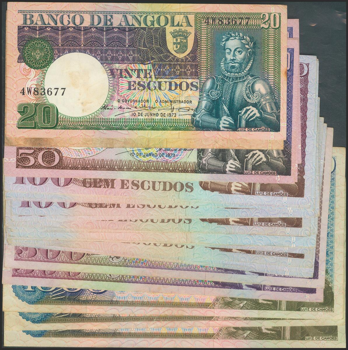 ANGOLA. Set of 30 banknotes, complete series (20 Escudos (2), 50 Escudos (3), 100 Escudos (20), 500 Escudos (2) and 1000 Escudos (3)). 1973. Banco de Angola. (Pick: 104, 105, 106, 107, 108). Very Fine to Extremely Fine. TO EXAM.