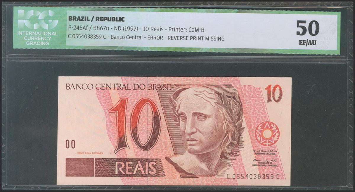 BRAZIL. 10 Reais. (1997ca). Serie C-C. Misprint. (Pick: 245Af). ICG50.