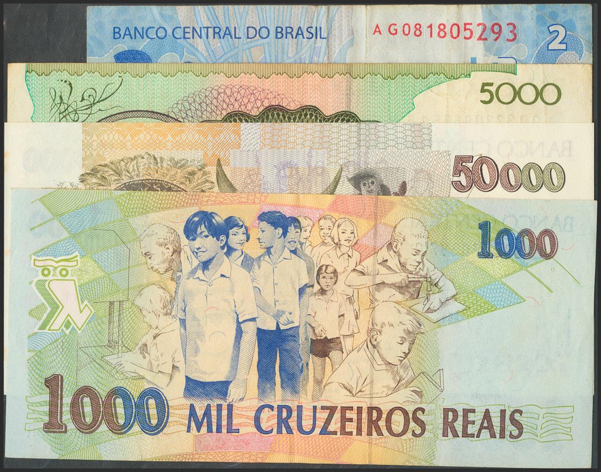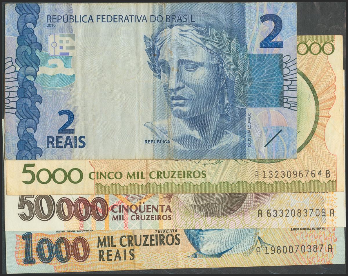 BRAZIL. Set of 4 banknotes, different values and years. Very Fine to Uncirculated.