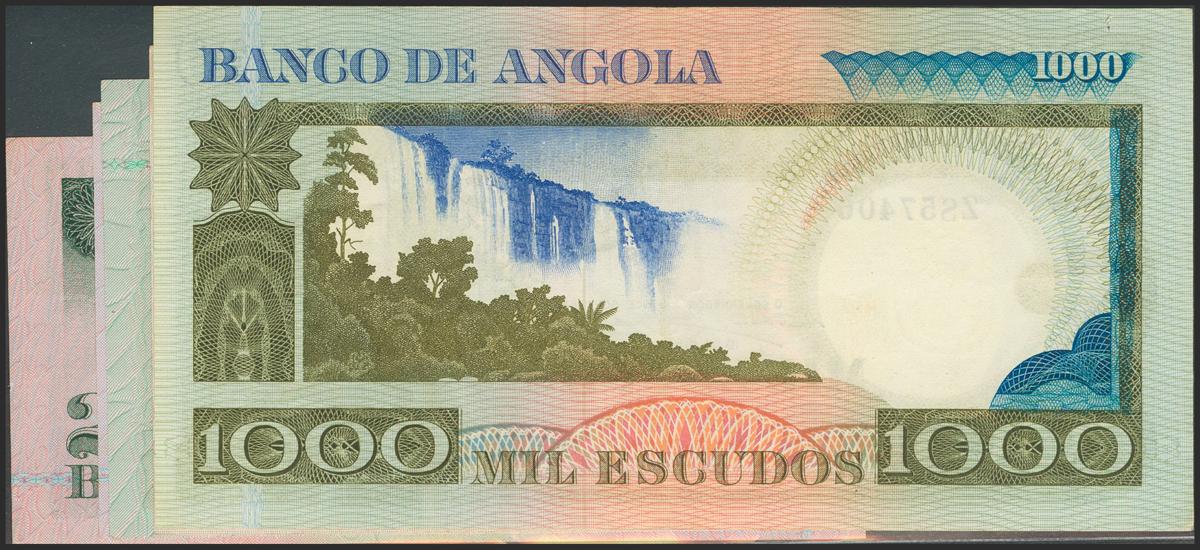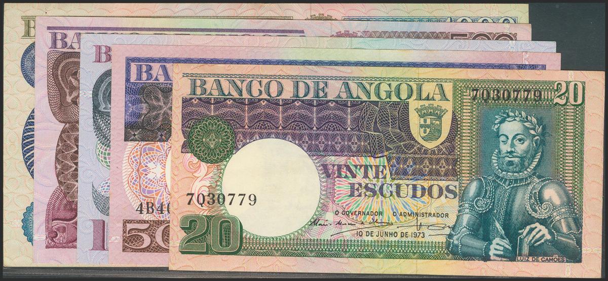 ANGOLA. Set of 5 banknotes, complete series (20 Escudos, 50 Escudos, 100 Escudos, 500 Escudos and 1000 Escudos). 1973. Banco de Angola. (Pick: 104, 105, 106, 107, 108). Very Fine to Uncirculated.