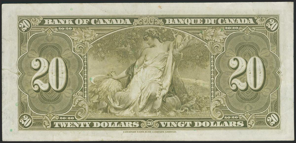 CANADA. 20 Dollars. 1937. (Pick: 62c). Small tear on top edge. Very Fine.