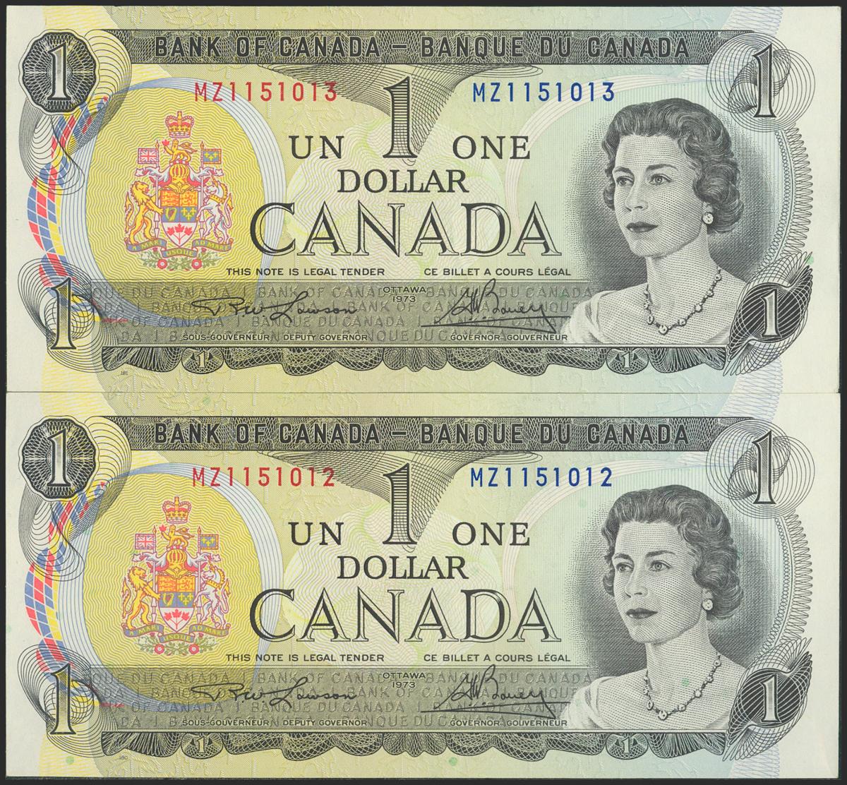 CANADA. 1 Dollar. 1973. Consecutive pair. (Pick: 85). Uncirculated.