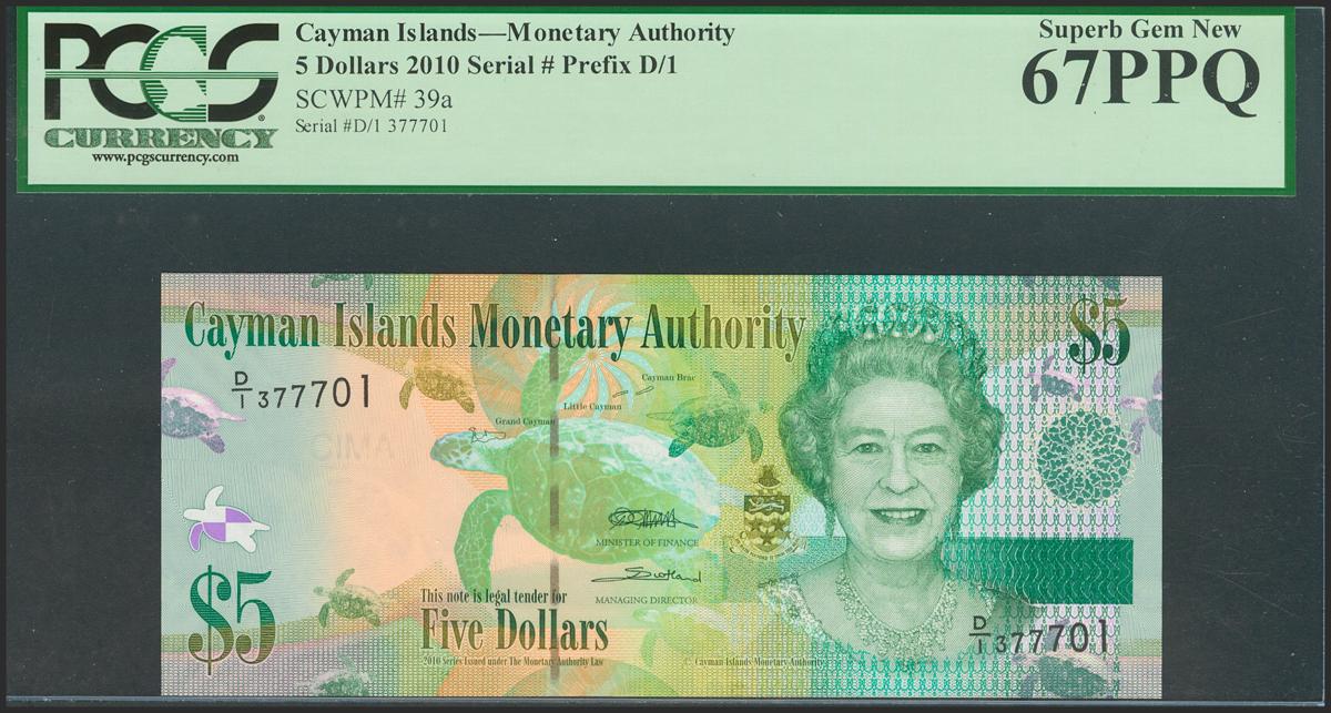 CAYMAN ISLANDS. 5 Dollars. 2010. (Pick: 39a). PCGS67PPQ.