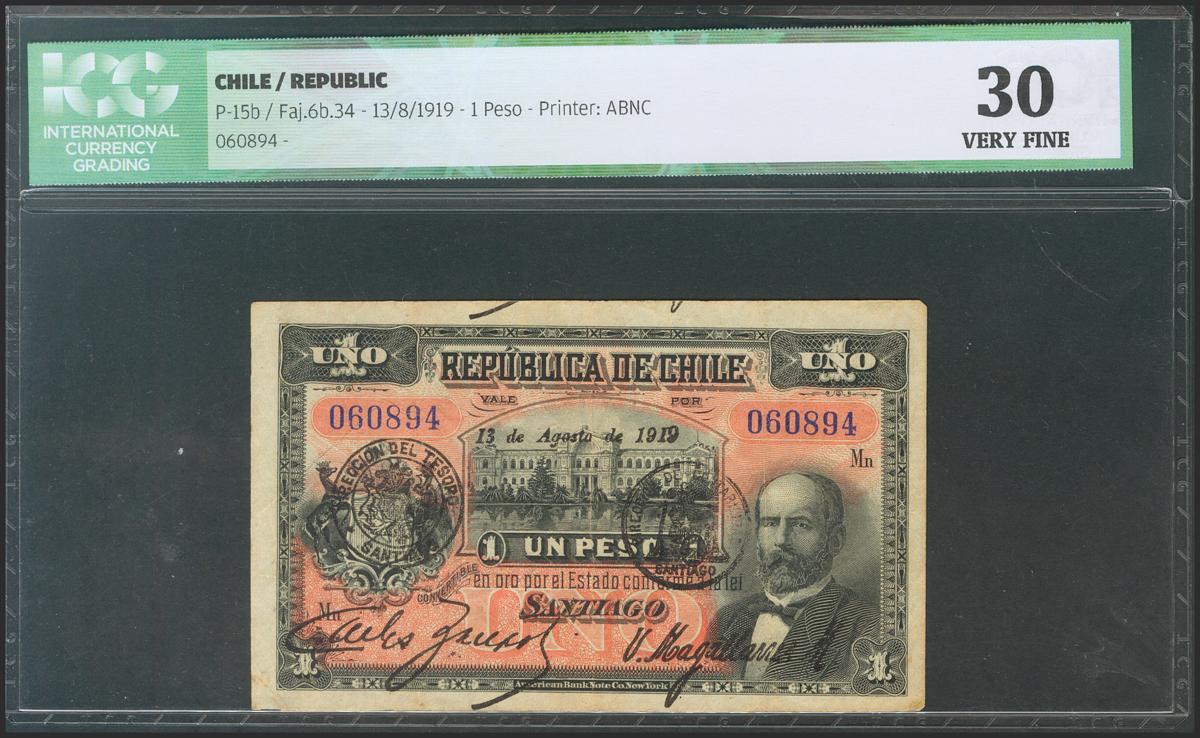 CHILE. 1 Peso. 13 Agust 1919. (Pick: 15b). ICG30.