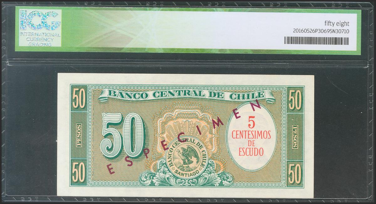 CHILE. 5 Centesimo on 50 Pesos. (1960ca). Serie A20. Specimen. (Pick: 126s). ICG58.