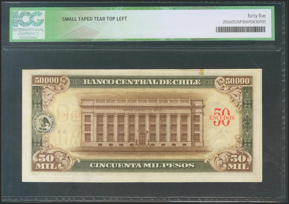 CHILE. 50 Escudos. (1960ca). Serie A6. (Pick: 133). ICG45*(Small taped tear top left).