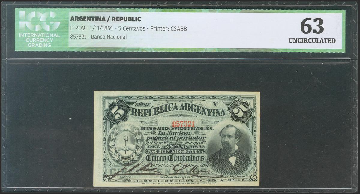 ARGENTINA. 5 Centavos. 1 November 1891. (Pick: 209). ICG63.