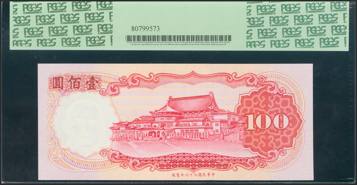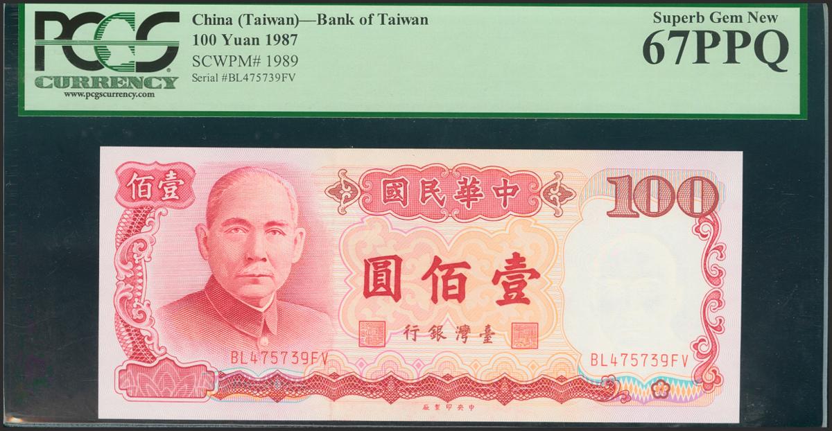 CHINA (REPUBLIC). 100 Yuan. 1987. (Pick: 1989). PCGS67PPQ.