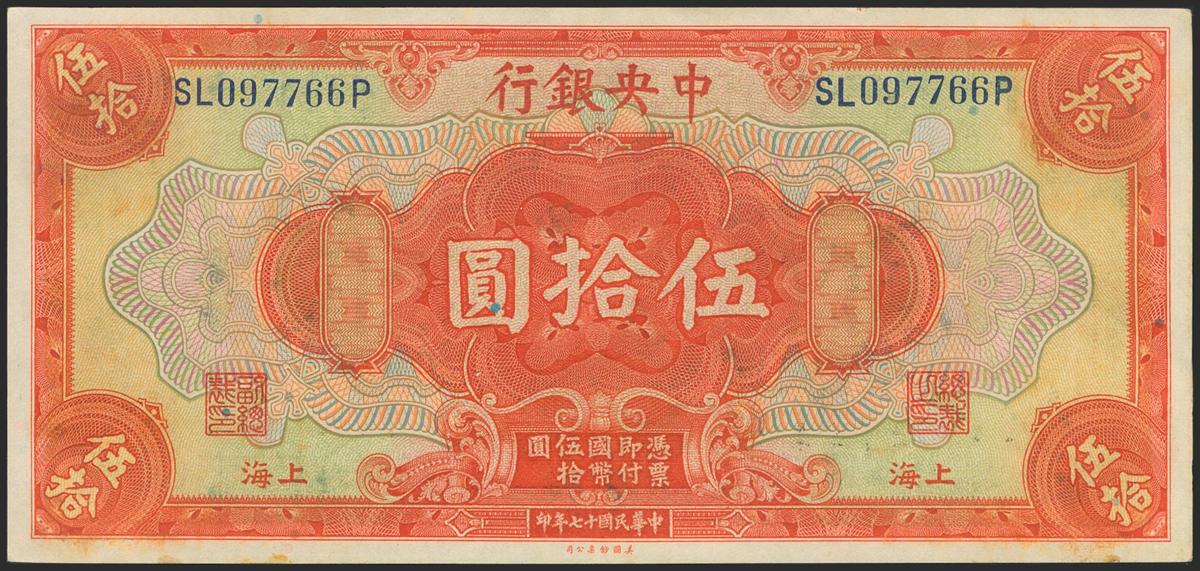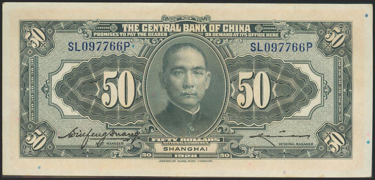 CHINA (REPUBLIC). 50 Dollars. 1928. (Pick: 198c). Better than Extremely Fine.