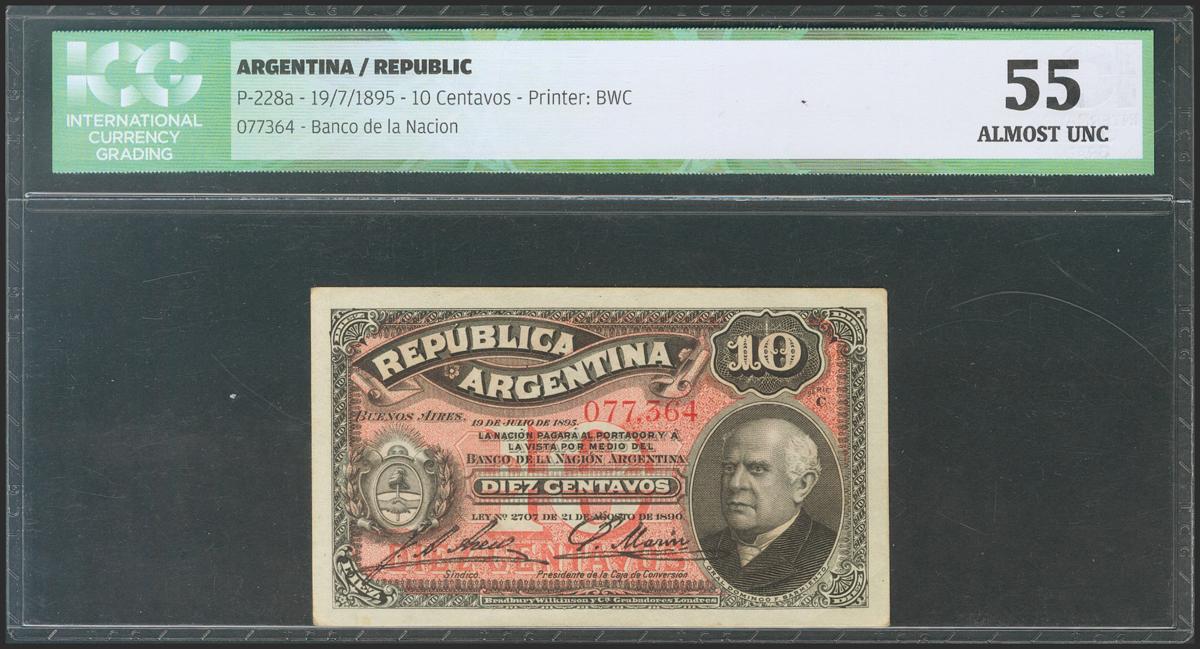 ARGENTINA. 10 Centavos. 1 July 1895. Serie C. (Pick: 228b). ICG55.