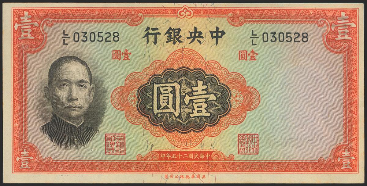 CHINA (REPUBLIC). 1 Yuan. 1936. (Pick: 216d). Uncirculated.