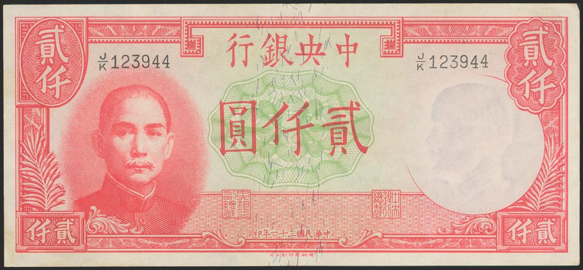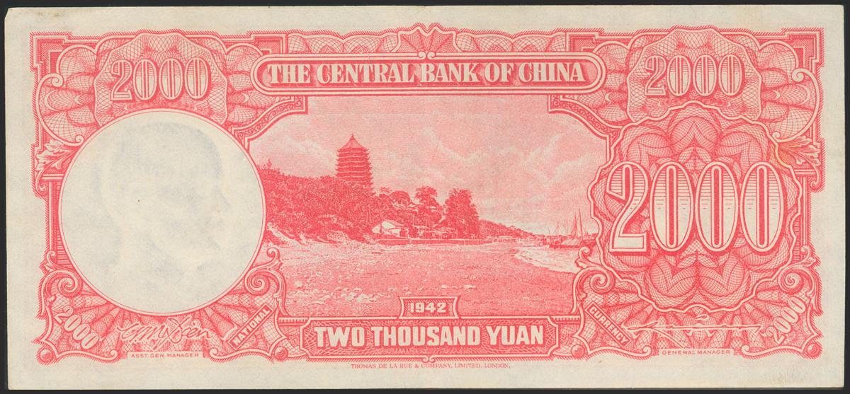 CHINA (REPUBLIC). 2000 Yuan. 1942. Central Bank of China. (Pick: 253). Very Fine.