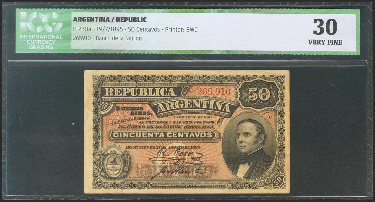 ARGENTINA. 50 Centavos. 19 July 1895. (Pick: 230a). ICG30.