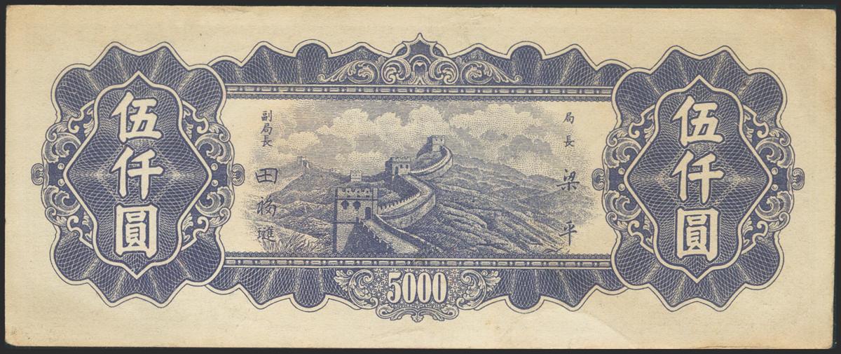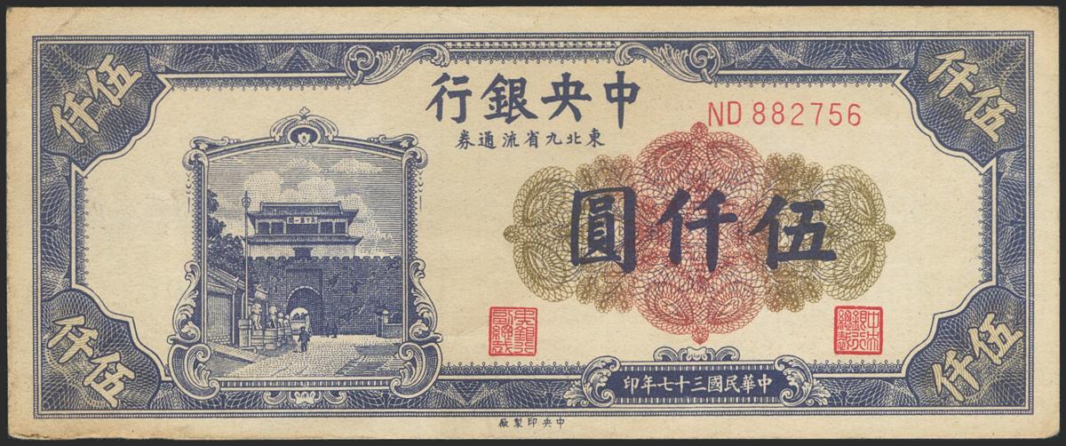 CHINA (REPUBLIC). 5000 Yuan. 1948. 9 Northeastern Provinces. (Pick: 385A). Dirty. Very Fine.