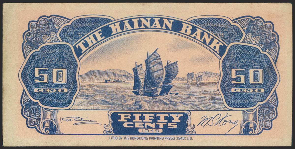 CHINA (REPUBLIC). 50 Cent. 1949. Hainan Bank. (Pick: S1456). Stain on obverse. About Uncirculated.