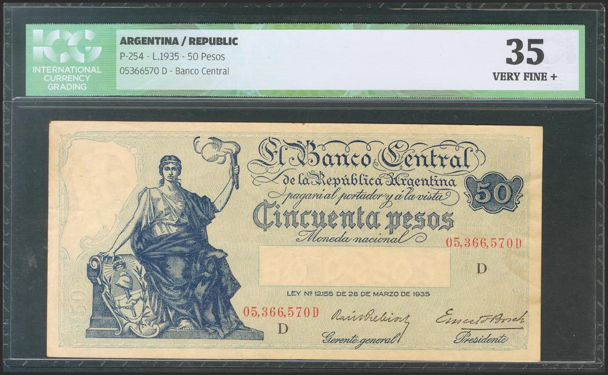 ARGENTINA. 50 Pesos. 1935. Serie D. (Pick: 254). ICG35.