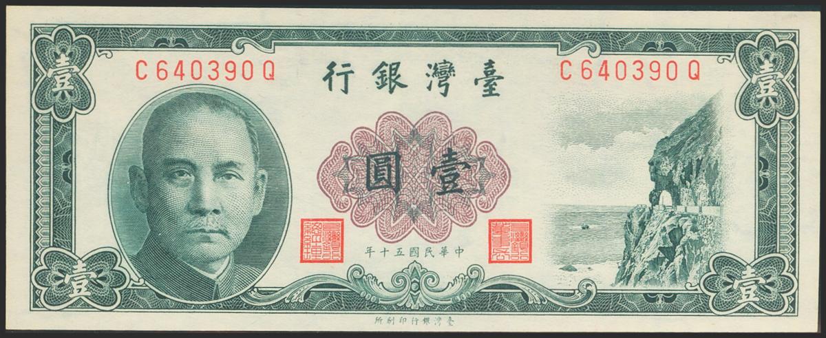 CHINA (TAIWAN). 1 Yuan. 1961. Bank of Taiwan. (Pick: 1971a). Uncirculated.