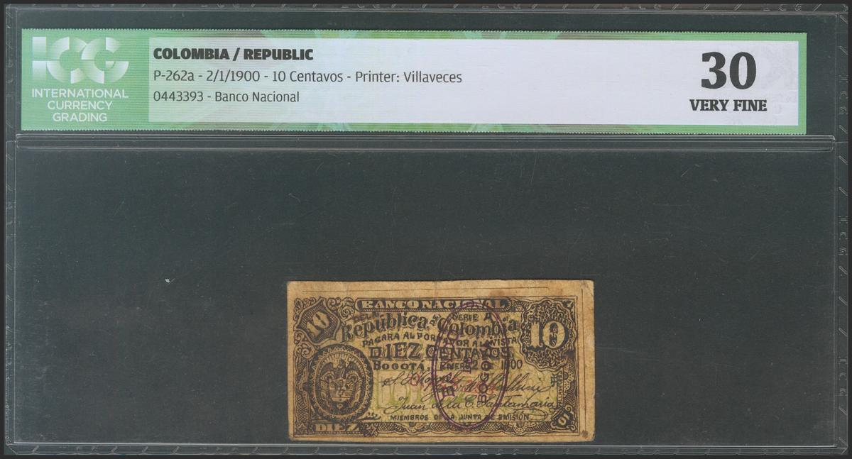 COLOMBIA. 10 Centavos. 2 January 1900. (Pick: 262a). ICG30.