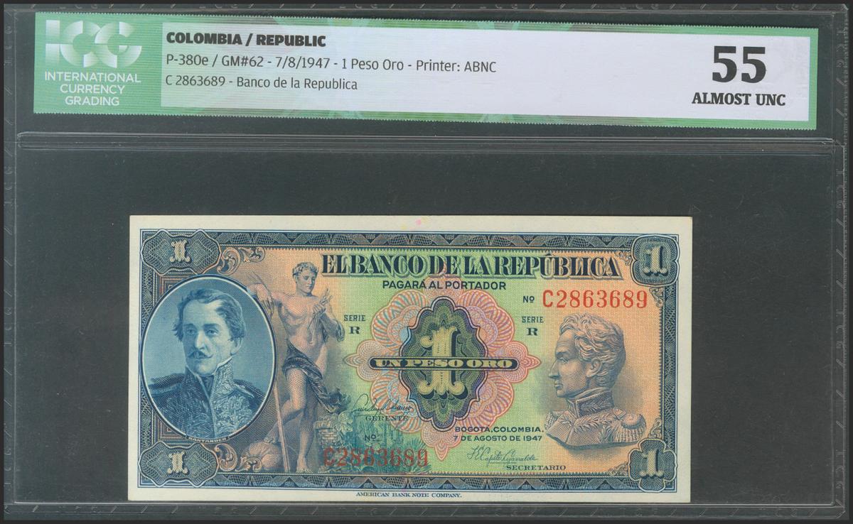 COLOMBIA. 1 Peso Oro. 7 August 1947. Serie R. (Pick: 380e). ICG55.