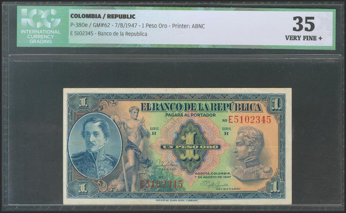 COLOMBIA. 1 Peso Oro. 7 August 1947. Serie R. (Pick: 380e). ICG35.