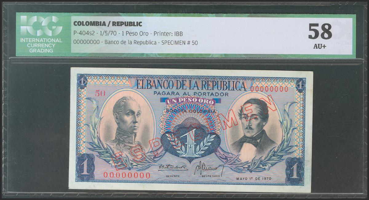 COLOMBIA. 1 Peso Oro. 1 May 1970. Specimen. (Pick: 404s2). ICG58.
