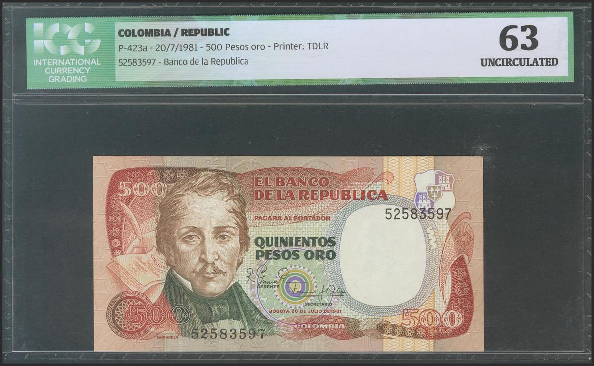 COLOMBIA. 500 Pesos Oro. 20 July 1981. (Pick: 423a). ICG63.