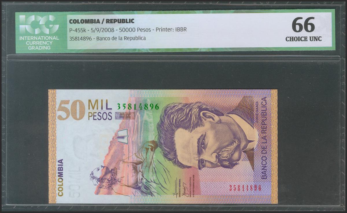COLOMBIA. 50000 Pesos. 5 September 2008. (Pick: 455k). ICG66.