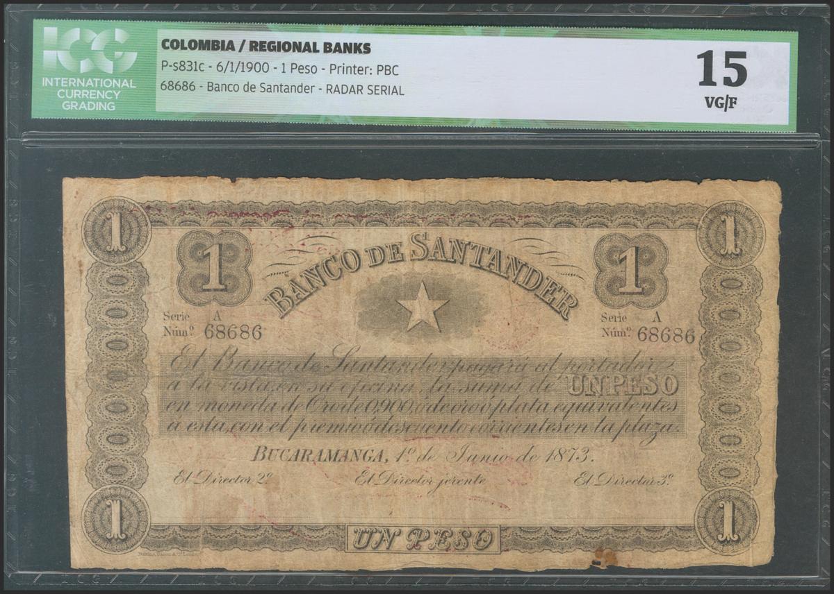 COLOMBIA. 1 Peso. 6 January 1900. Serie A. (Pick: s831c). ICG15.