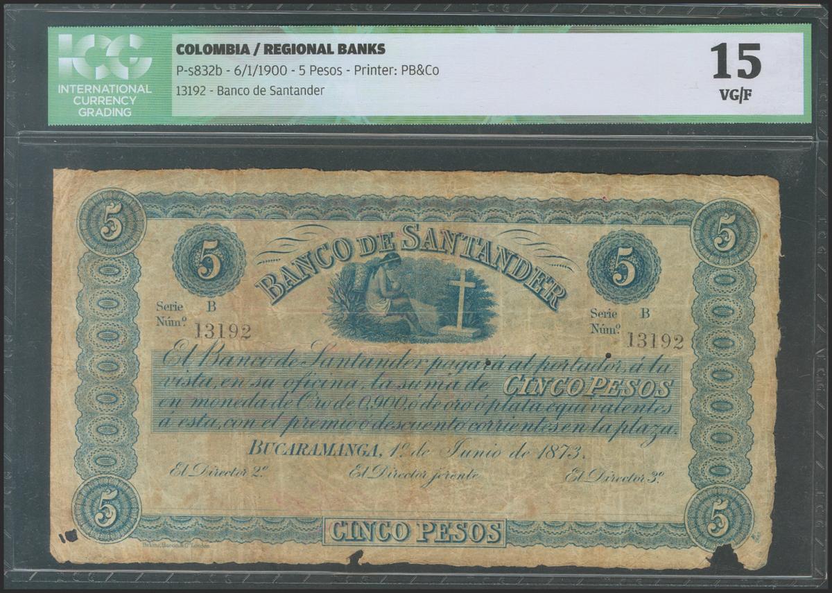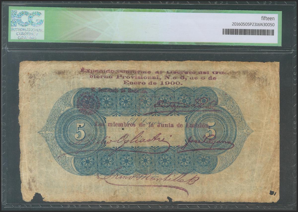 COLOMBIA. 5 Peso. 6 January 1900. Serie B. (Pick: s832b). ICG15.