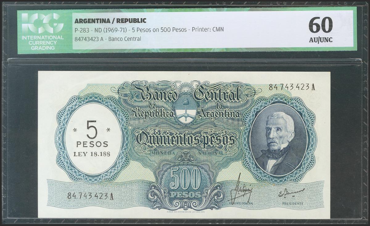 ARGENTINA. 500 Pesos. (1969ca). Serie A. (Pick: 283). ICG60.