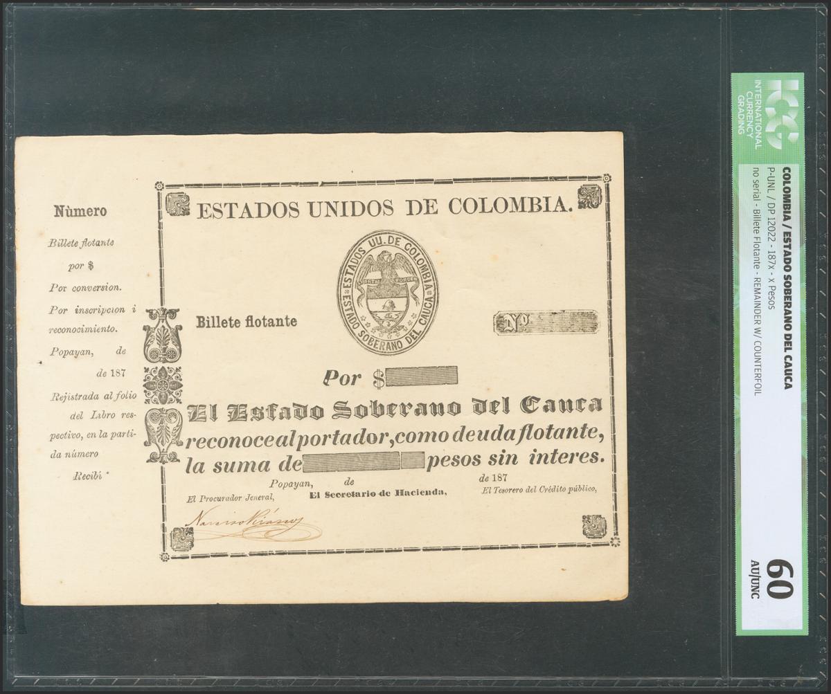 COLOMBIA. X Pesos. (1800ca). Counterfoil. (Pick: not listed, DP: 12022). ICG60.