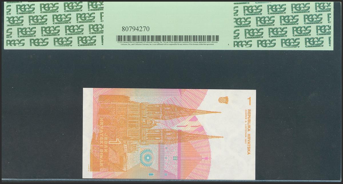 CROATIA. 1 Dinar. 8 October 1991. (Pick: 16a). PCGS67PPQ.
