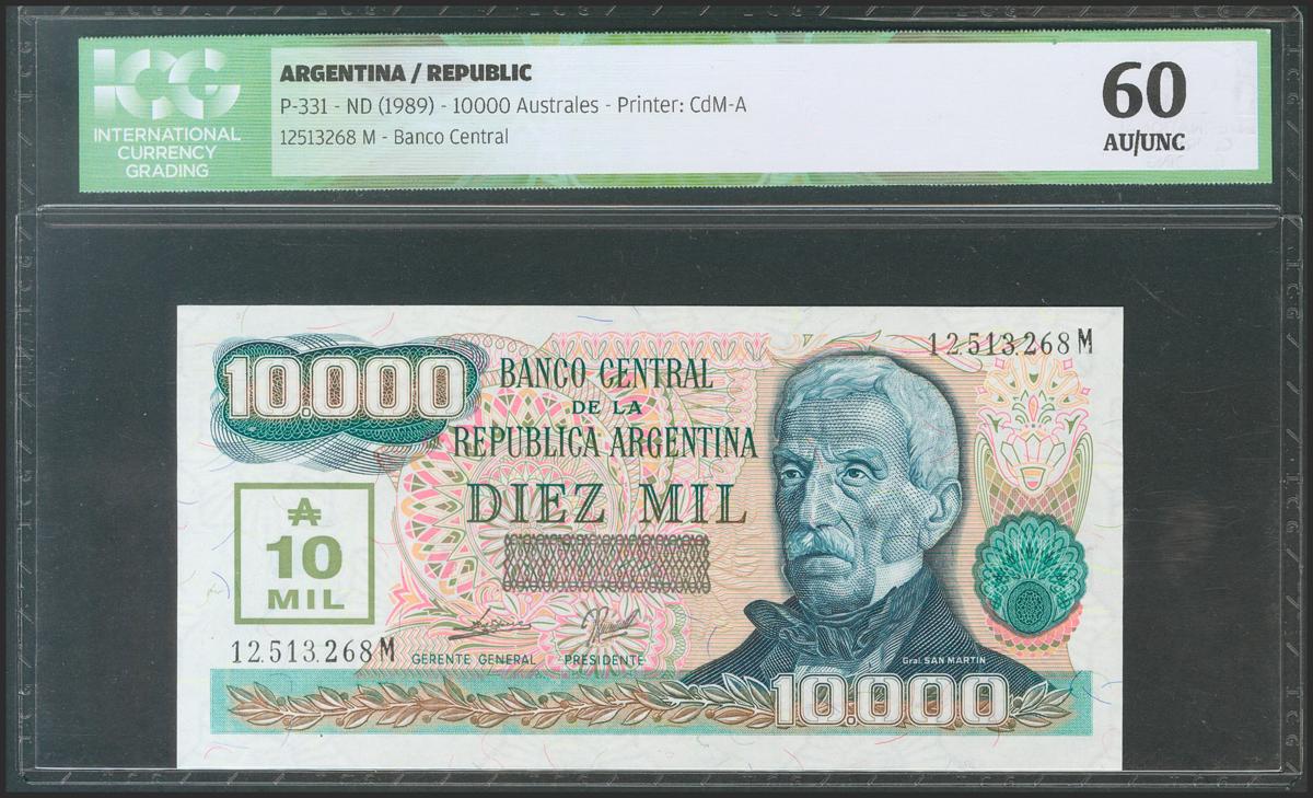 ARGENTINA. 10000 Australes. (1989ca). Serie M. (Pick: 331). ICG60.