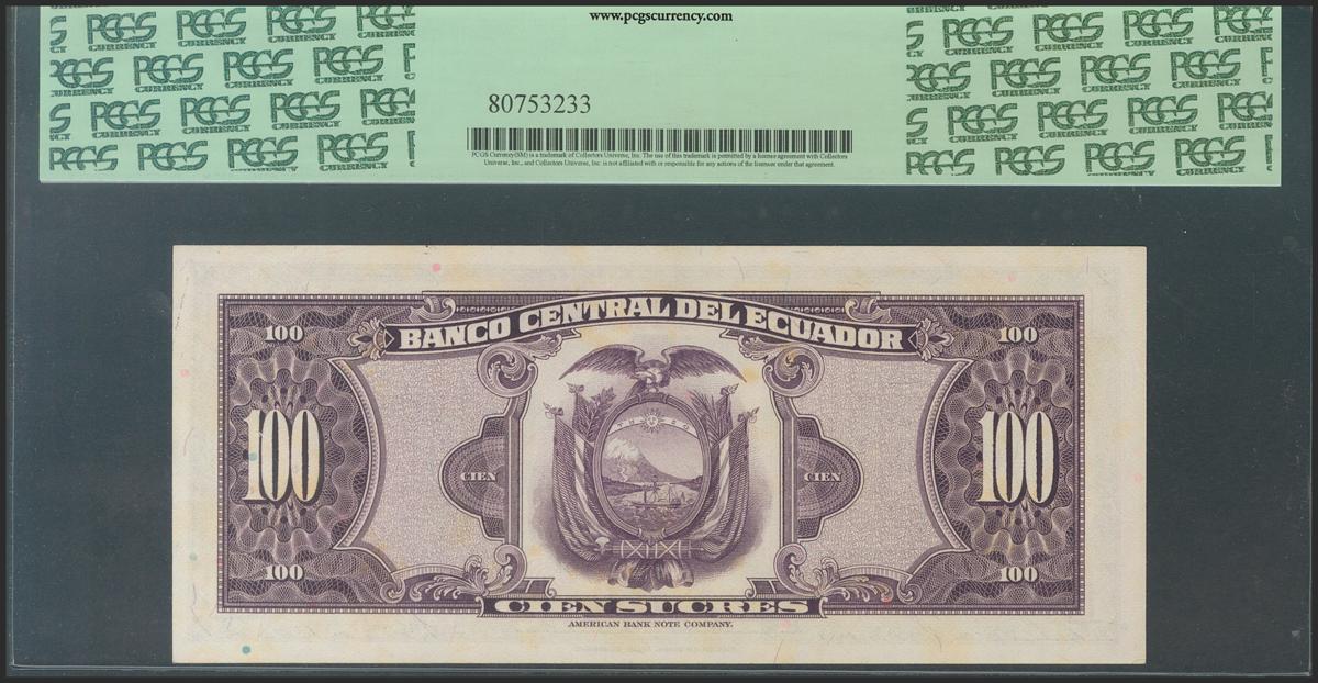 ECUADOR. 100 Sucres. 24 May 1968. Serie TZ. (Pick: 105). PCGS62.