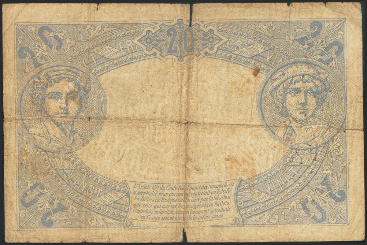 FRANCE. 20 Francs. 1912. (Pick: 68b). Rare. Good.