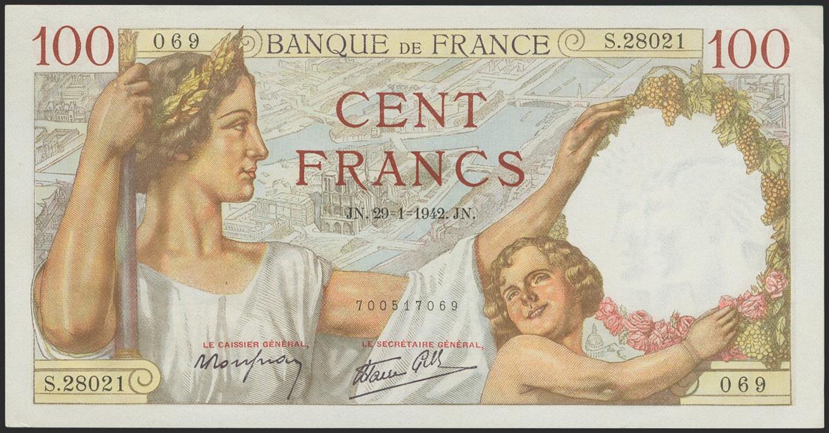 FRANCE. 100 Francs. 1942. (Pick: 94a). Uncirculated.