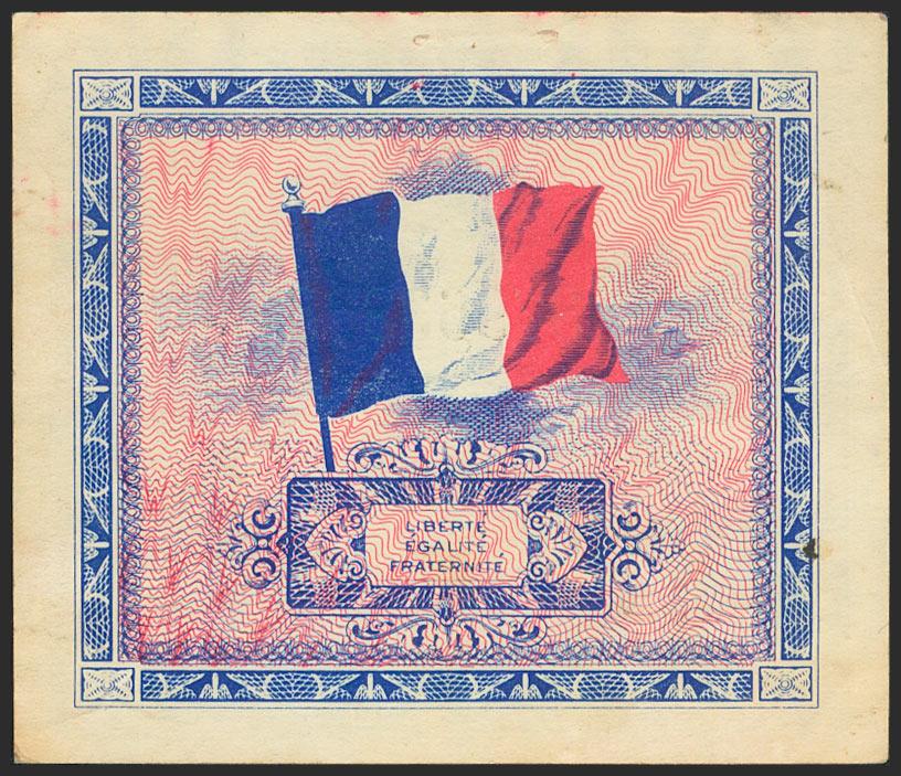 FRANCE. 2 Francs. 1944. Military Issues. (Pick: 114b). Three tiny pinholes on top section. Almost Extremely Fine.