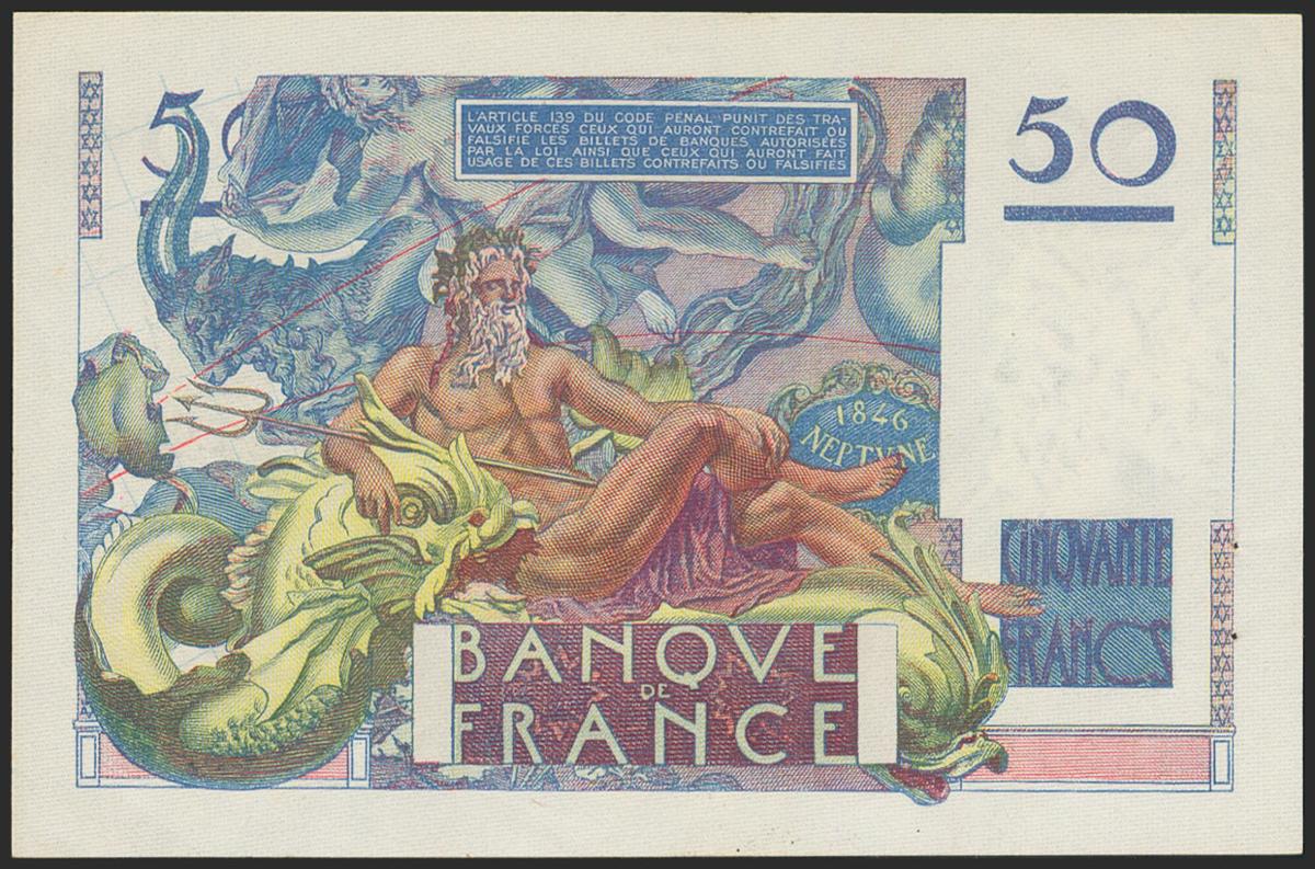 FRANCE. 50 Francs. 1946. (Pick: 127a). Two pinholes. Extremely Fine.