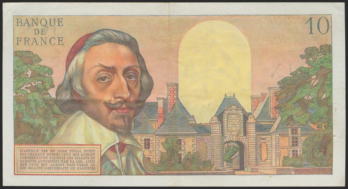 FRANCE. 10 Noveaux Francs. 1962. (Pick: 142a). Two pinholes on left. Very Fine.