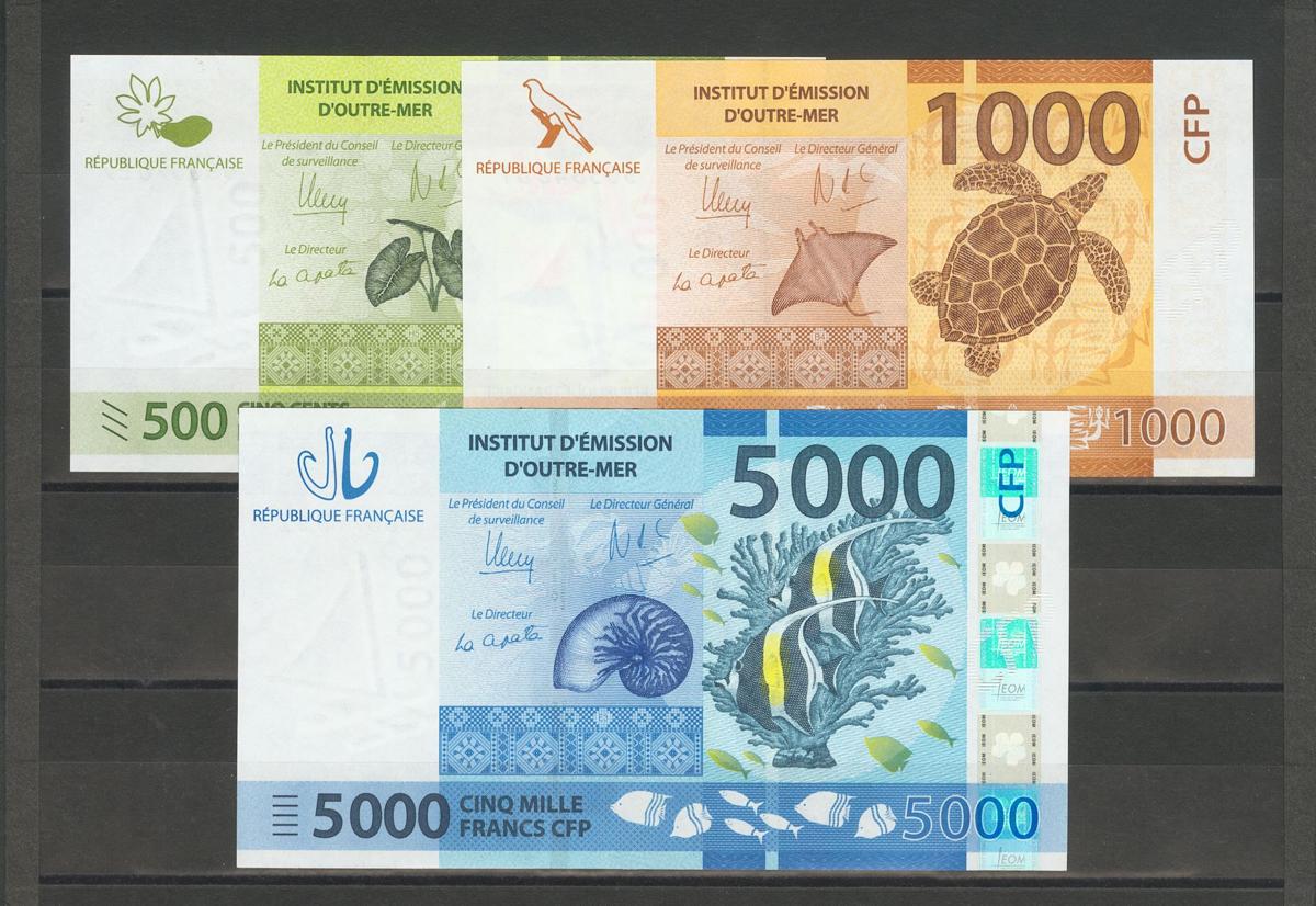 FRENCH PACIFIC TERRITORIES. 500 Francs, 1000 Francs, 5000 Francs. (2014ca). (Pick: 5, 6, 7). Uncirculated.