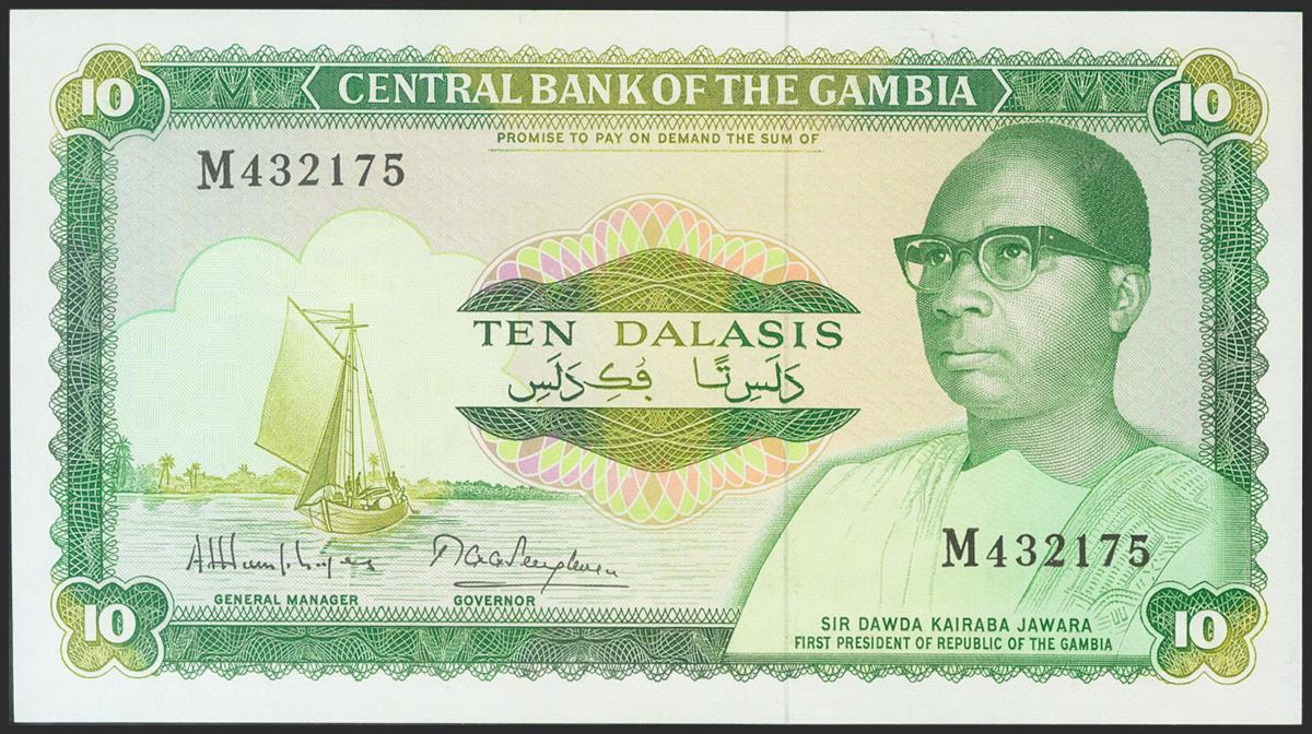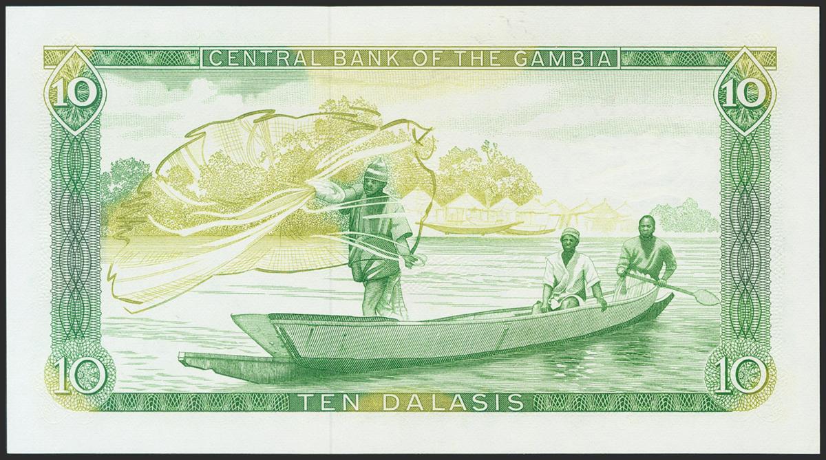 GAMBIA. 10 Dalasis. 1972-1986. (Pick: 6c). About Uncirculated.