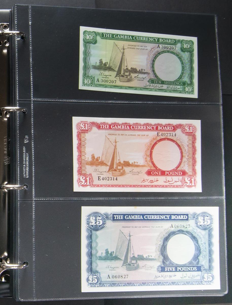 GAMBIA. Great set of 76 banknotes, includes an amazing series of Pick 1-3 and 4-7 in uncirculated to about uncirculated. Uncirculated to About Uncirculated. TO EXAM.