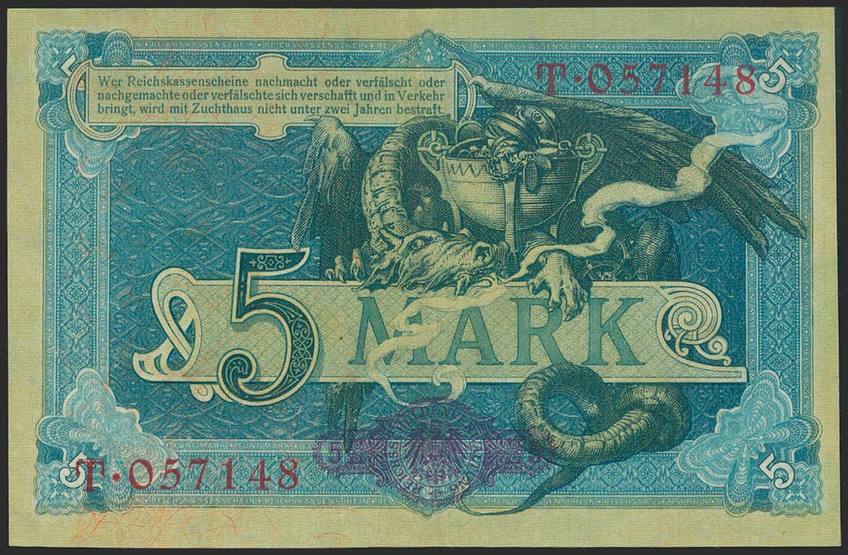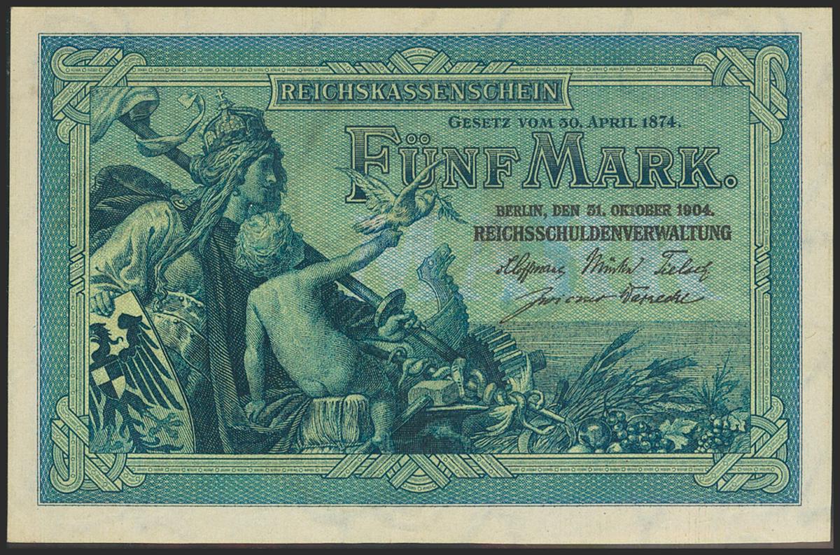 GERMANY. 5 Mark. 1904. Reichskassenschein. (Pick: 8a). Uncirculated.