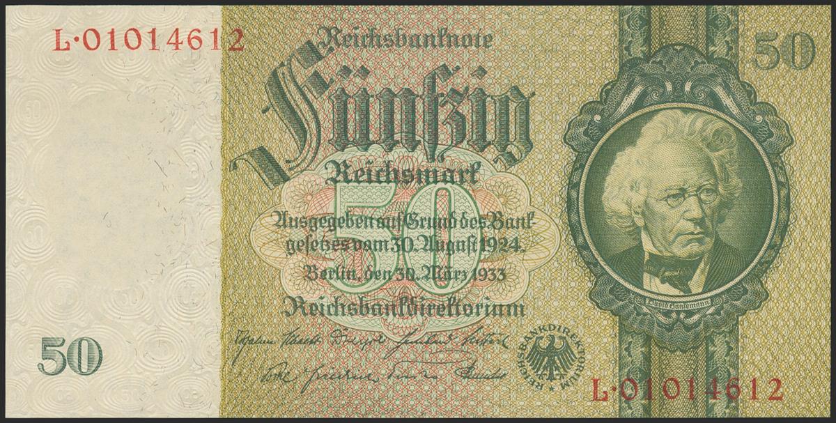 GERMANY. 50 Reichsmark. 1933. Series L. (Pick: 182). Uncirculated.