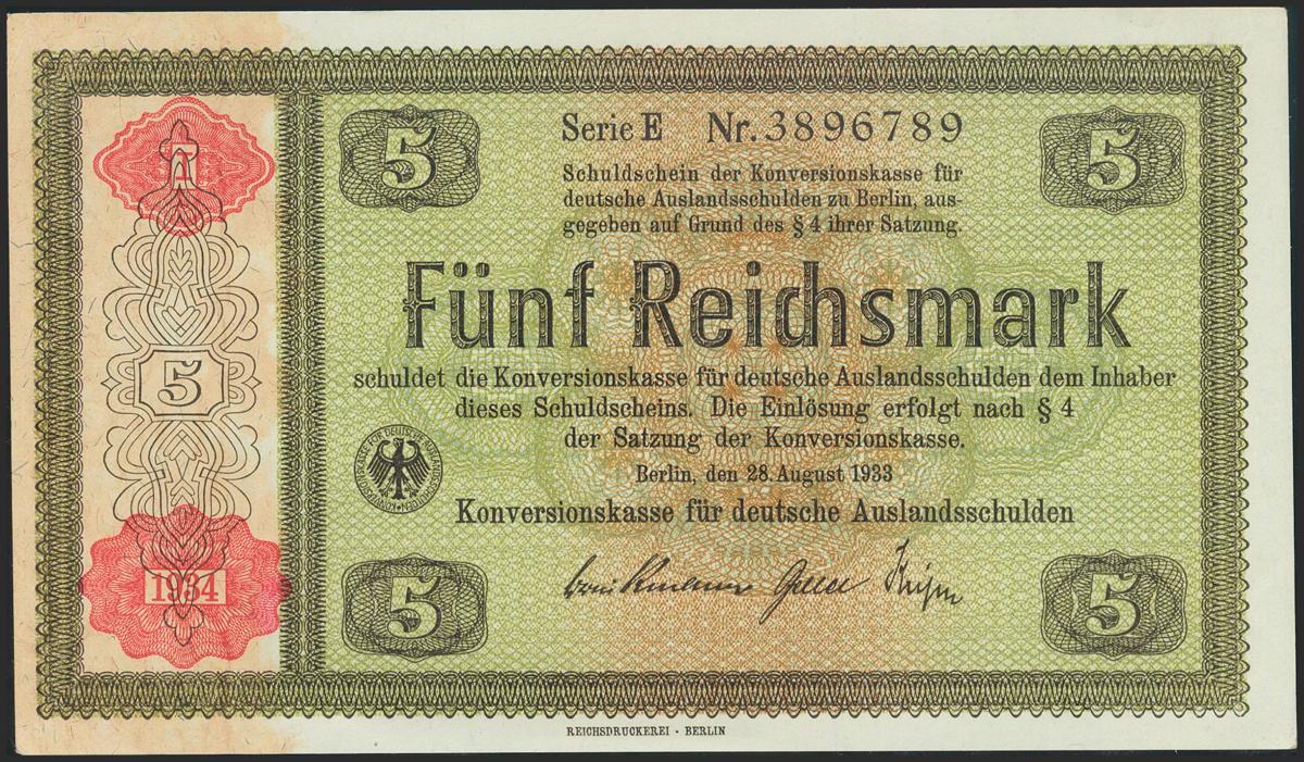 GERMANY. 5 Mark. 28 August 1933. (Pick: 207). Extremely Fine.